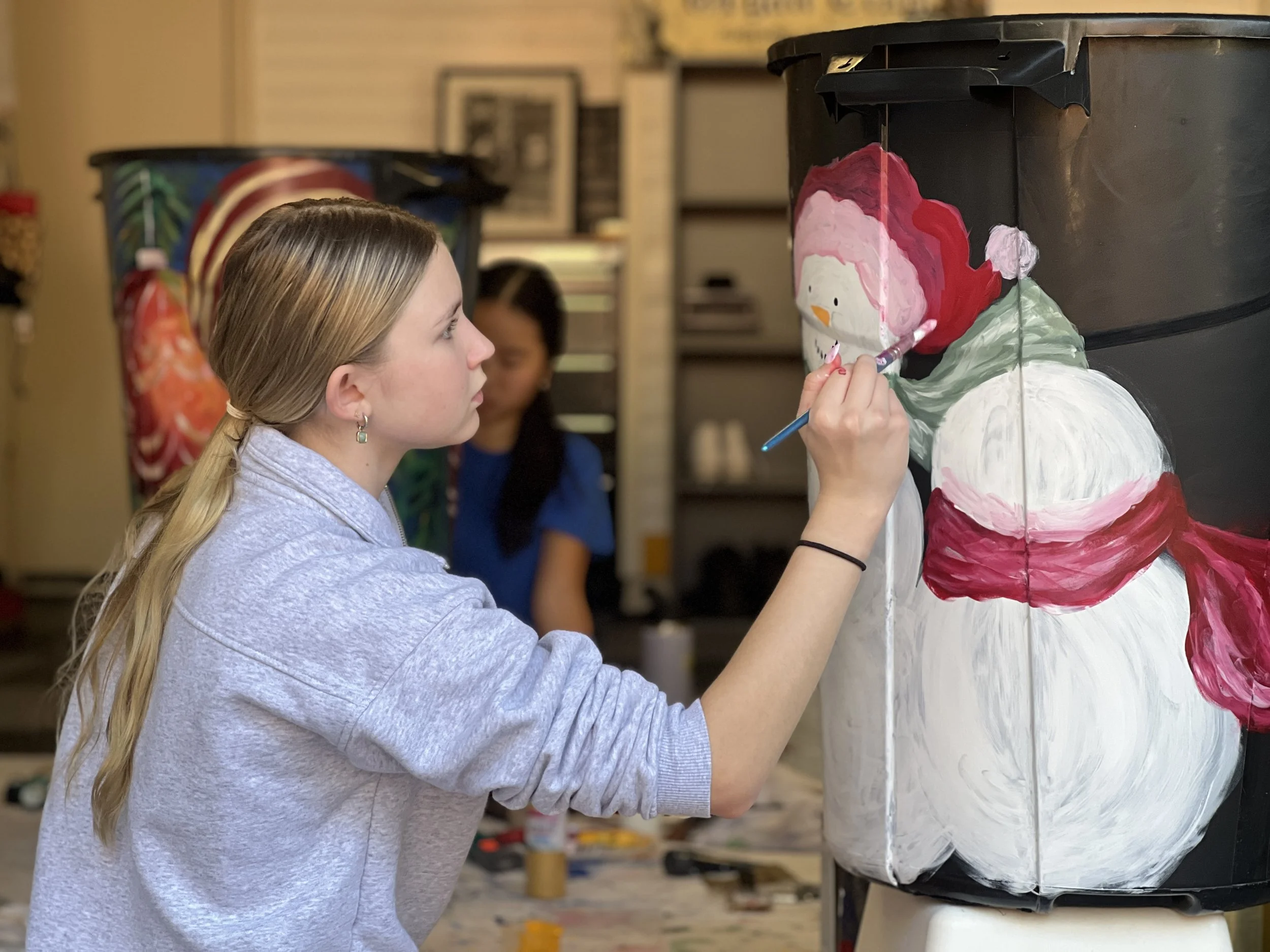 After an inflow of acknowledgment and appreciation from the citizens of Irving, UnboundEd Art agreed to send in special Christmas-themed trash bins to the city to bring the jolly season into art. The art team has been hard at work designing and painting these new pieces, and UnboundEd Art hopes to bring happiness to all across DFW.
