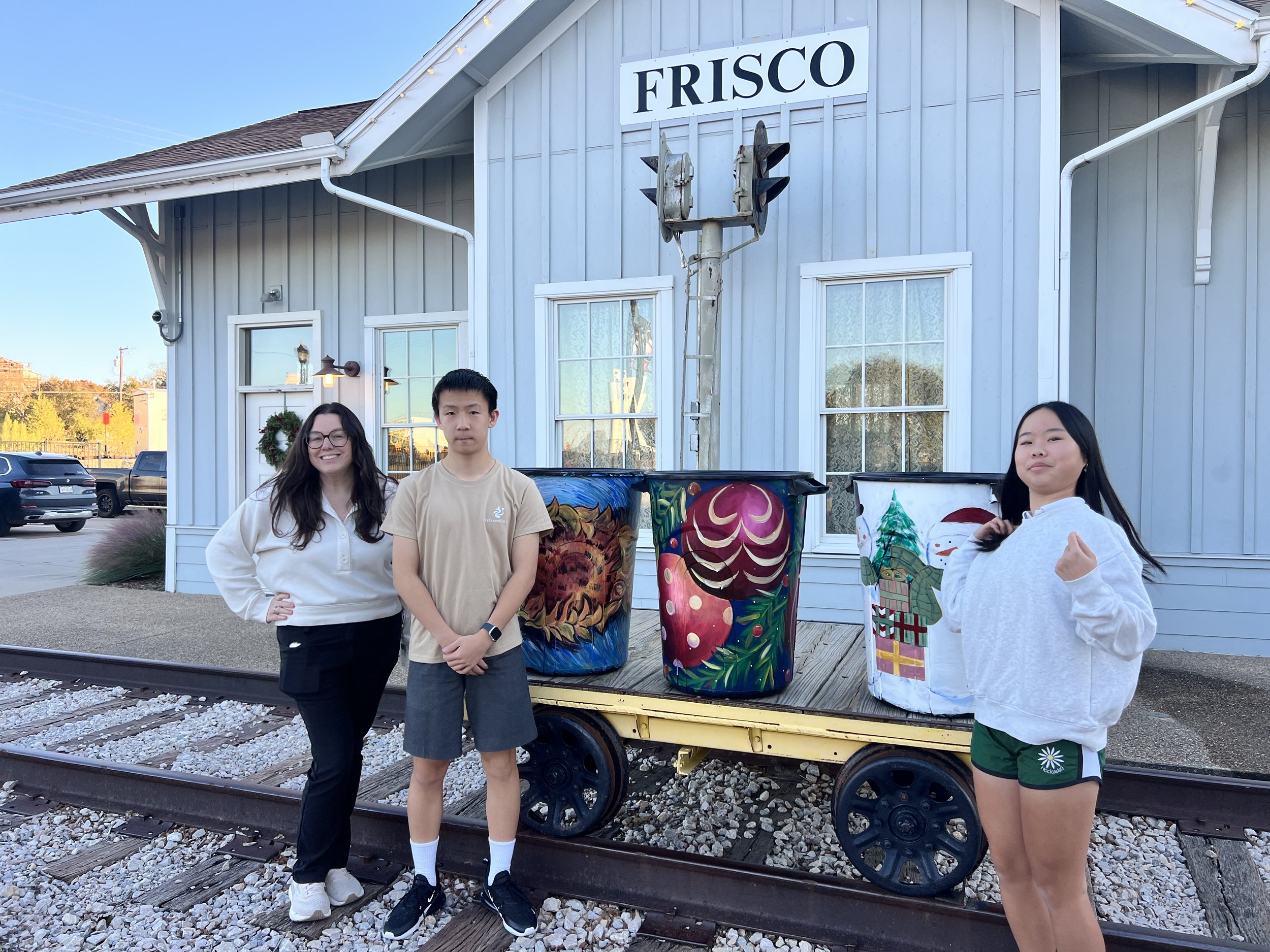 Following immense success in different communities in the DFW area, UnboundEd Art expanded their reach by sending out artwork to the city of Frisco. The trash bins fit right in with the Christmas holiday decor set up in the artistically rich city. The cans are on showcase at Frisco’s Heritage Museum, which offers various historical exhibitions.